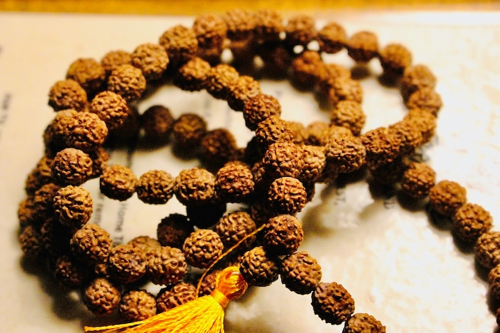 A traditional Rudraksha mala is strung as a necklace where the beads touch one another. Ideally, they should be strung loosely enough to move freely but not so loosely that the mala feels awkward.